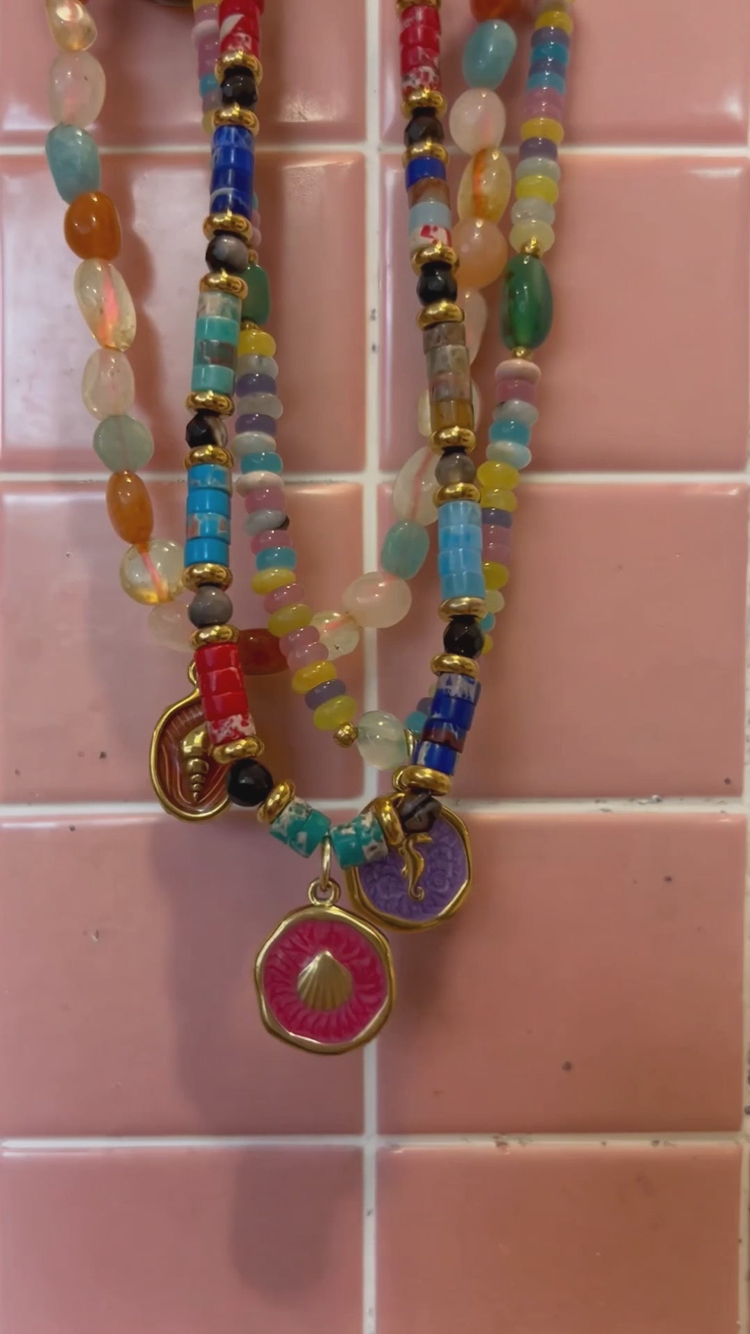 Please note that necklaces made with vintage beads all differ slightly and are unique. We have tried to capture the necklaces in differnt light settings and with video to represnt the true colours.